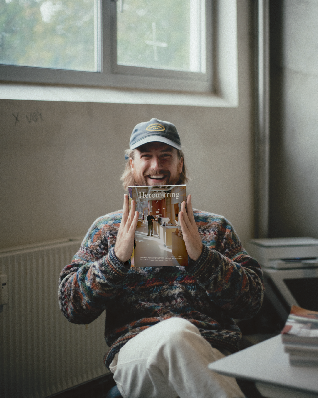 Et billede af mig (og min ven, som jeg ikke fik navnet på), der prøver at regne ud, om navnet ‘Heromkring’ giver mening.
